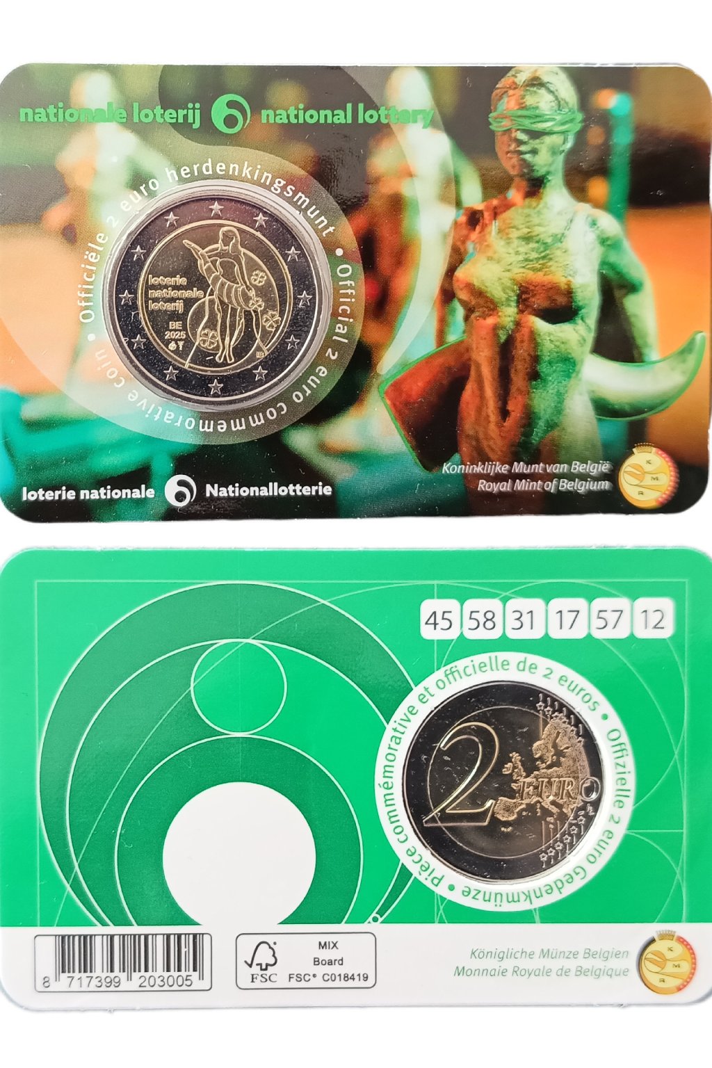 Belgicko si v roku 2025 pripomína 90. výročie svojej Národnej lotérie, inštitúcie, ktorá už takmer celé storočie podporuje verejnoprospešné projekty, šport, kultúru či sociálnu pomoc. Minca zobrazuje postavu Fortúny – rímskej bohyne šťastia, ako symbol nádeje a osudu, ktoré sú s lotériou neodmysliteľne späté. Je to pripomienka toho, že niekedy aj malý tiket môže zmeniť život – nielen jednotlivcovi, ale aj celej komunite.