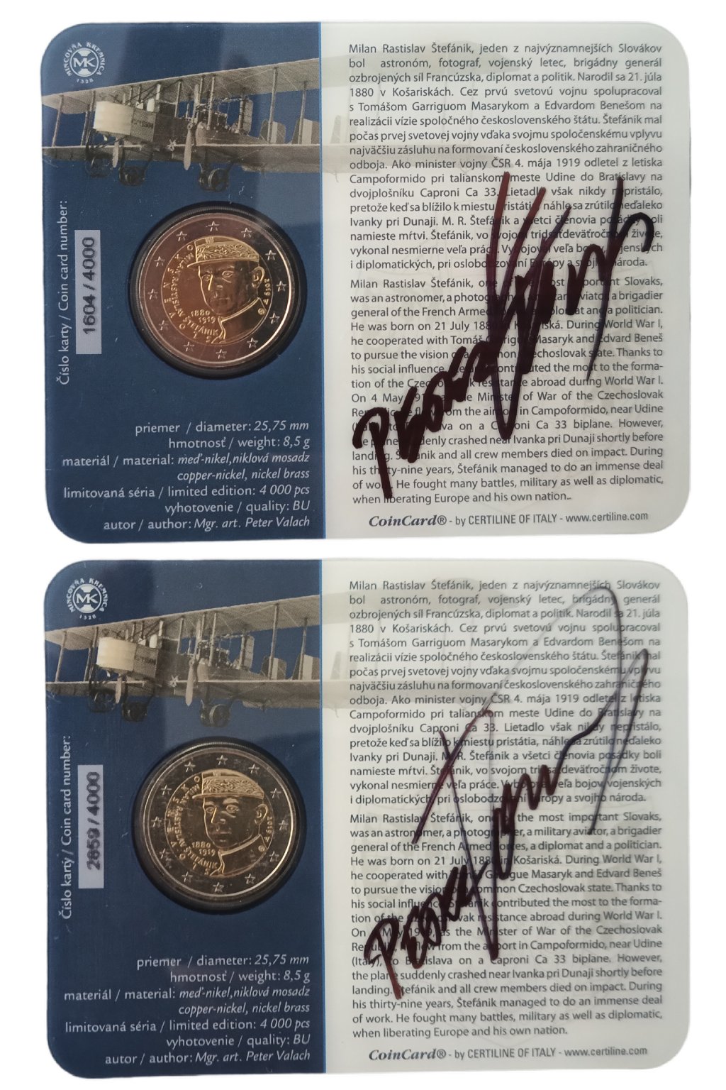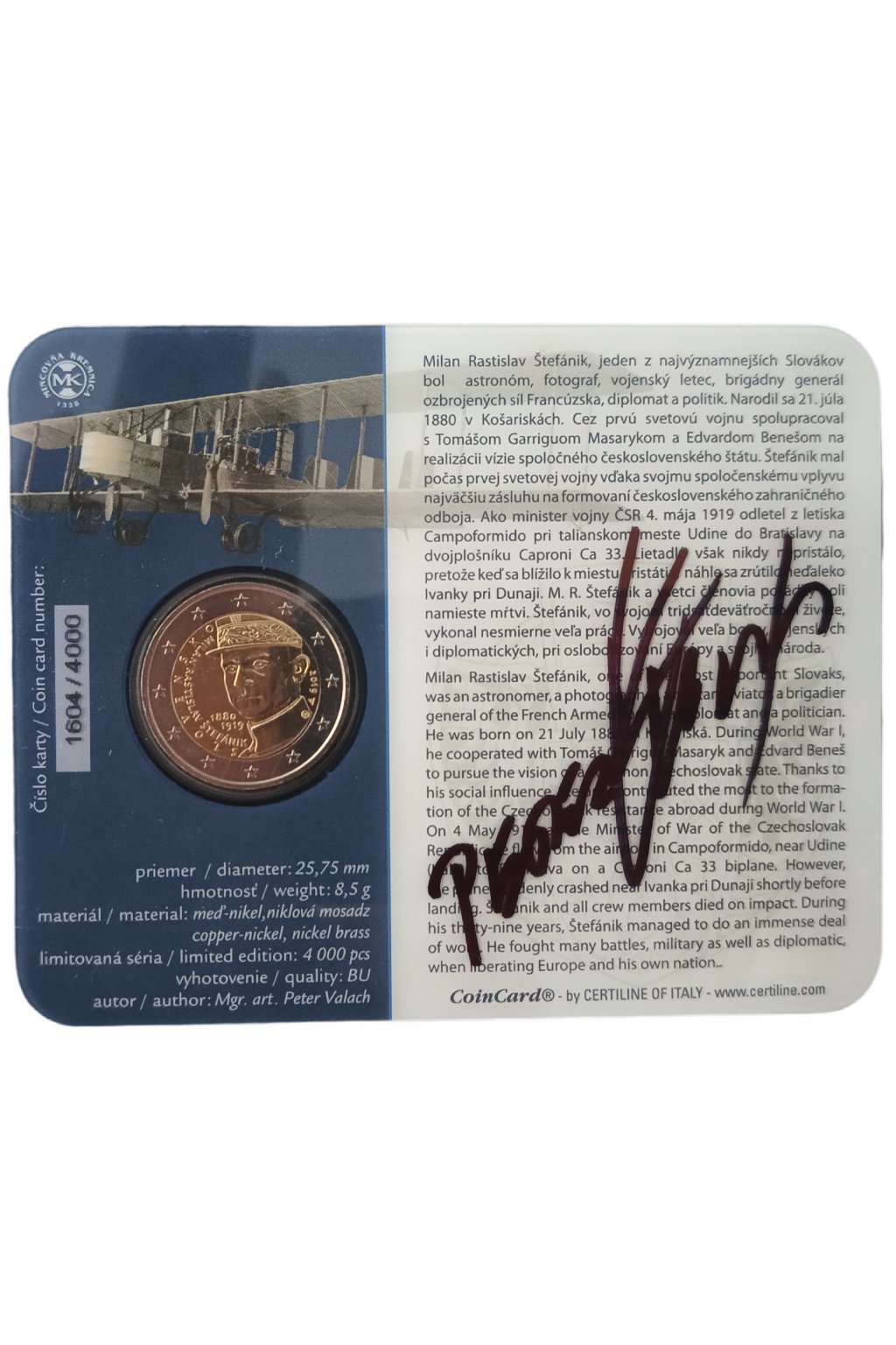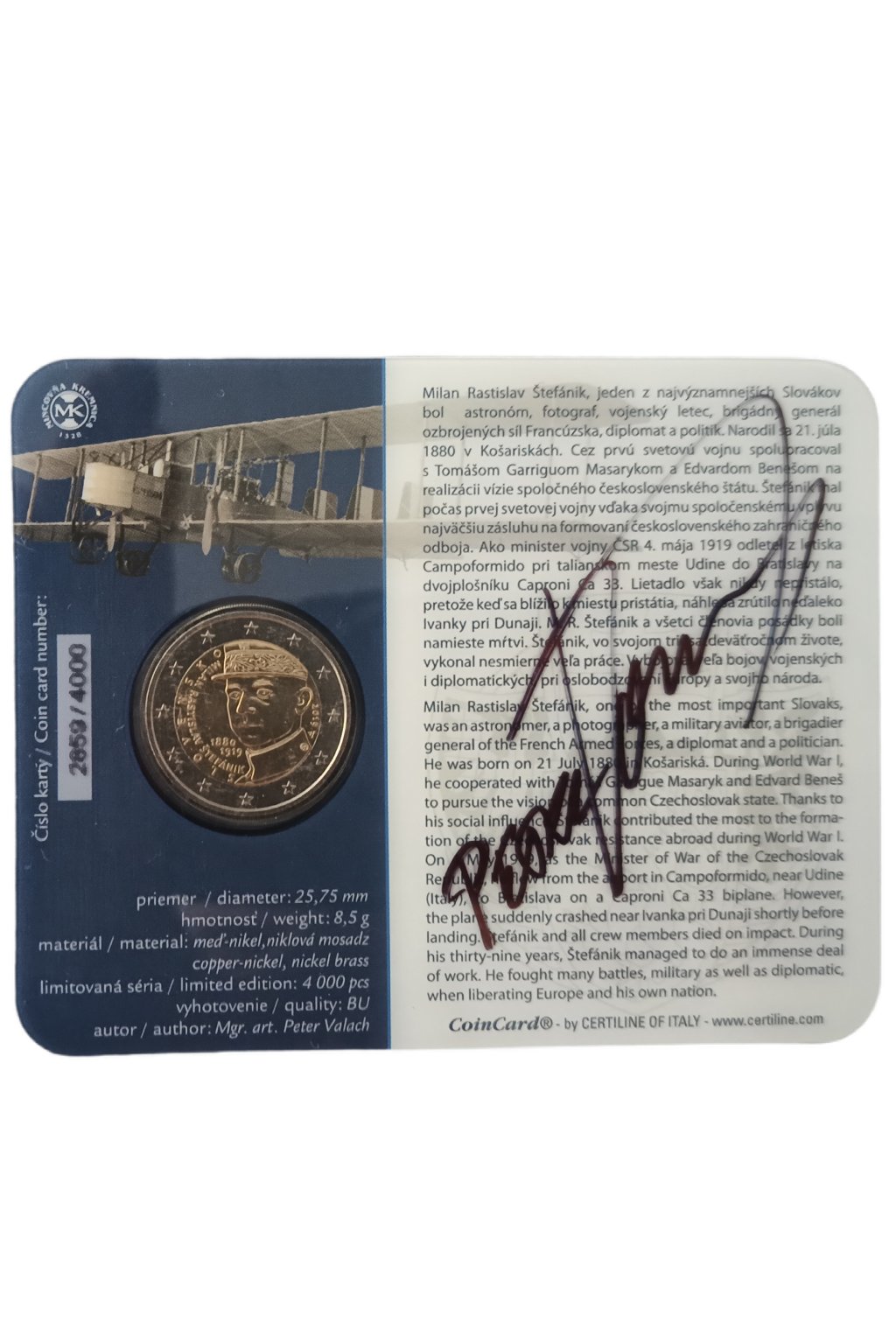 Slovensko 2019 - 100. výročie úmrtia Milan Rastislav Štefánik vlastnoručný podpis autora mince
