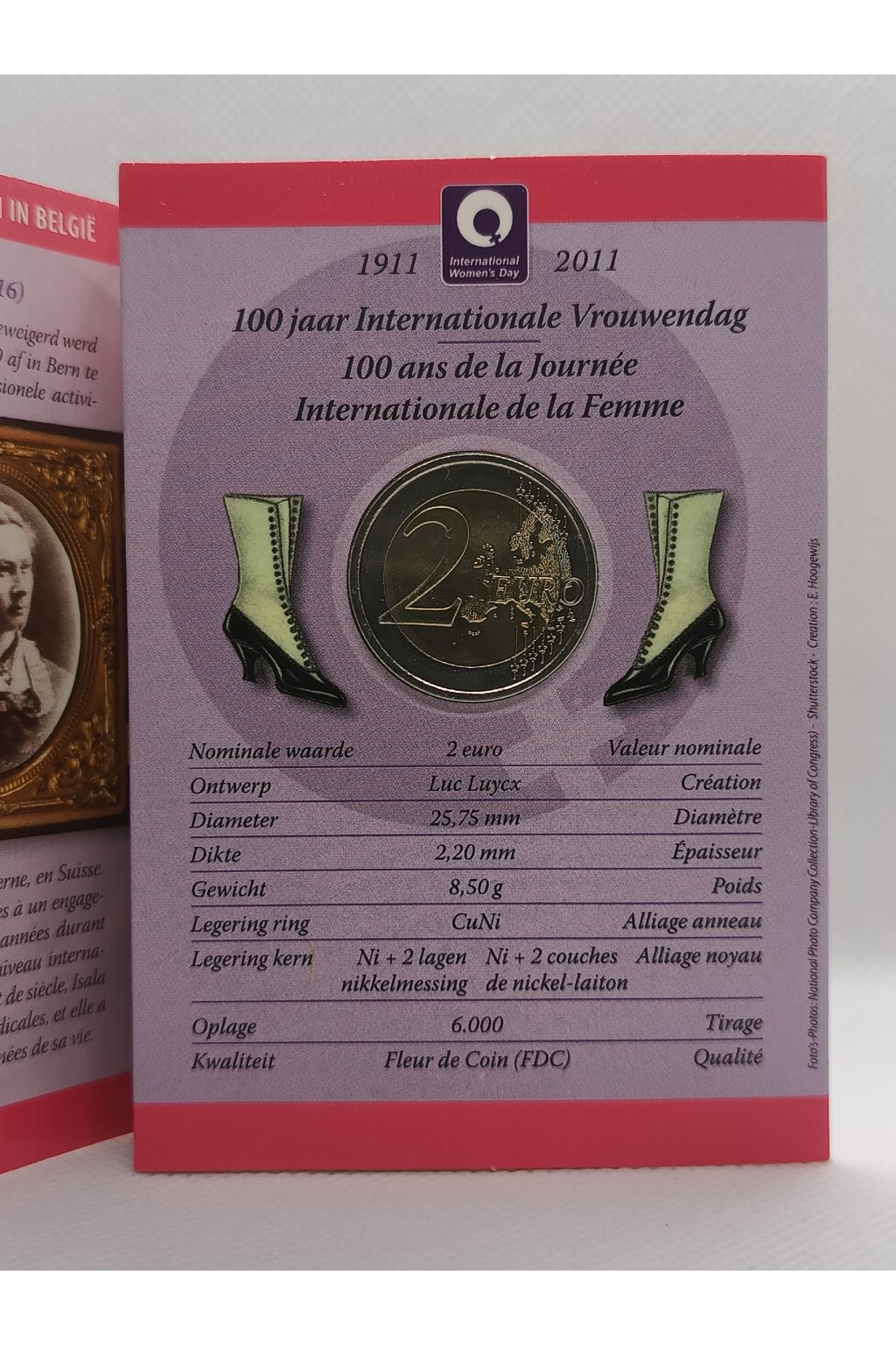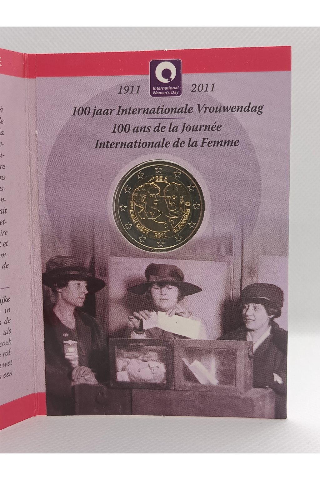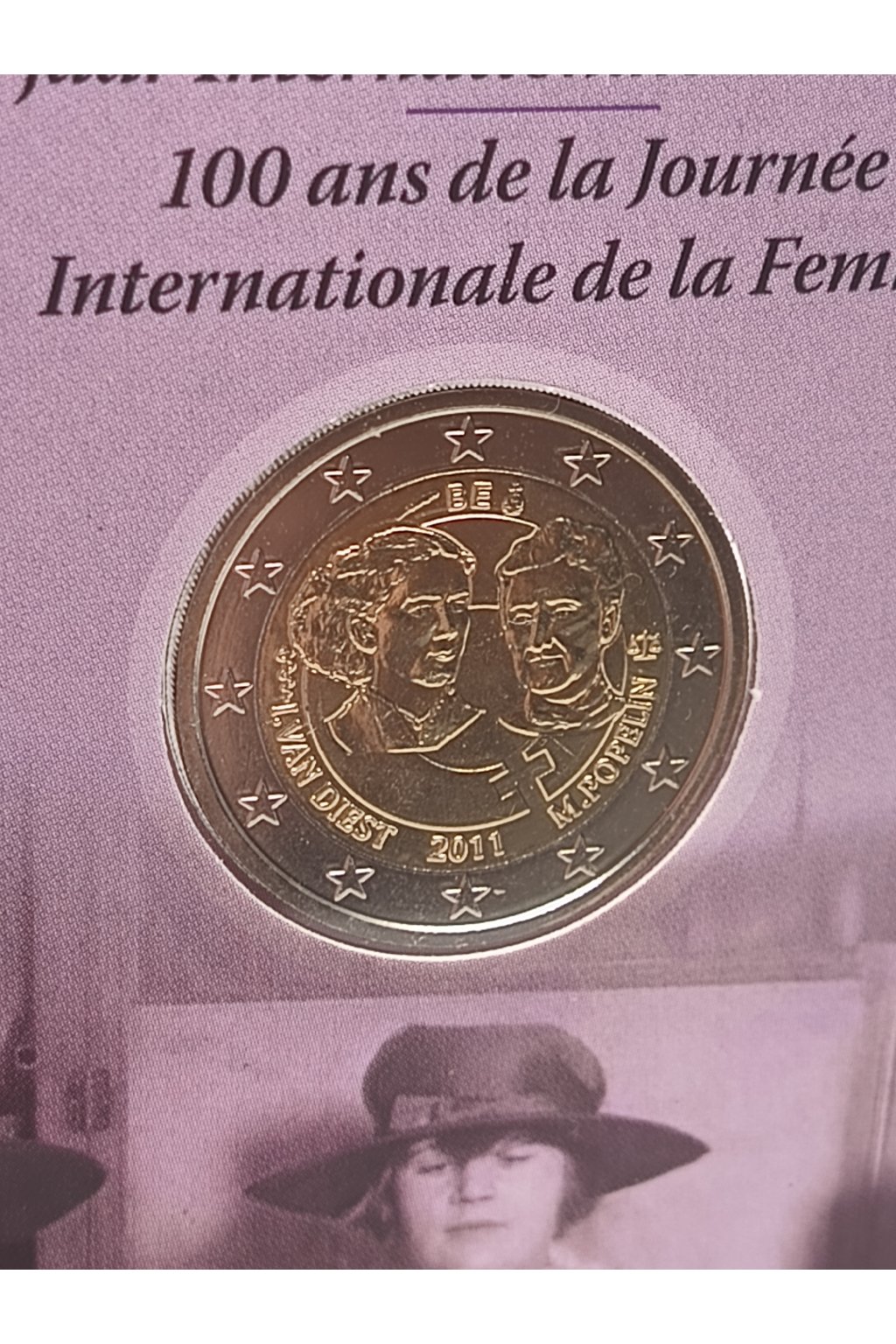 Belgická pamätná minca 2 € z roku 2011 bola vydaná pri príležitosti 100. výročia Medzinárodného dňa žien (1911 – 2011). Vyznačuje sa originálnym dizajnom s dvomi ženskými postavami — Isala Van Diest a Marie Popelin, ktoré symbolizujú historický boj žien za rovnoprávnosť v oblasti vzdelania, práva a medicíny.