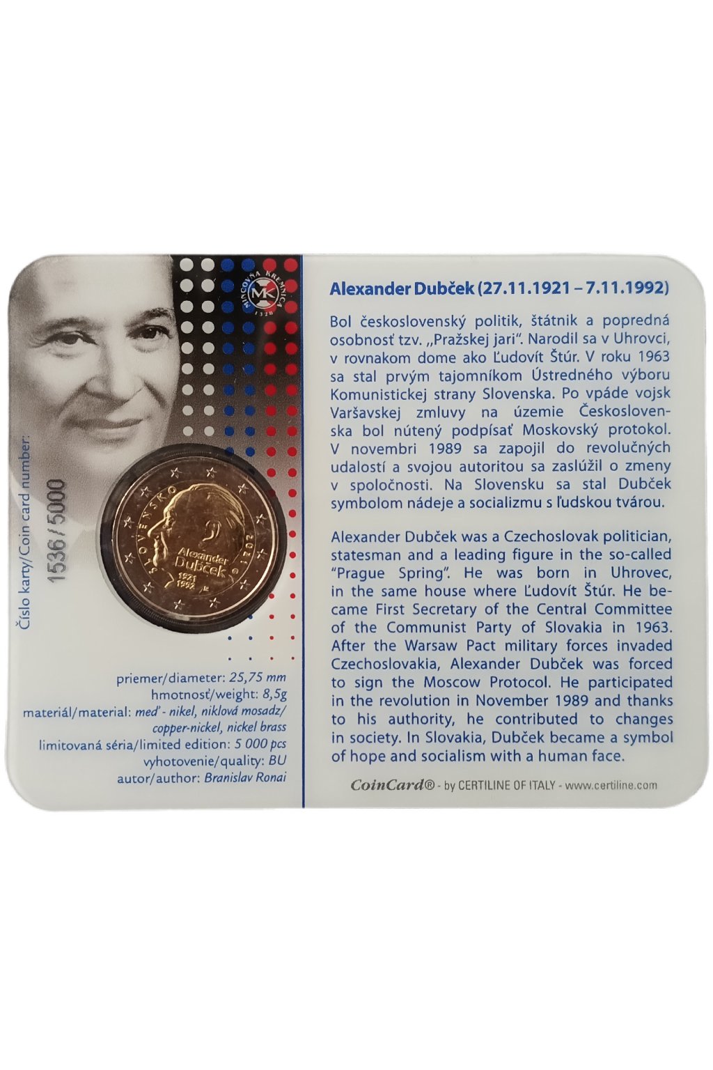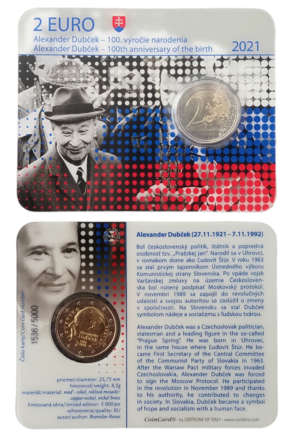Slovenská 2€ pamätná minca 2021 – A. Dubček (zberateľská BU karta)
