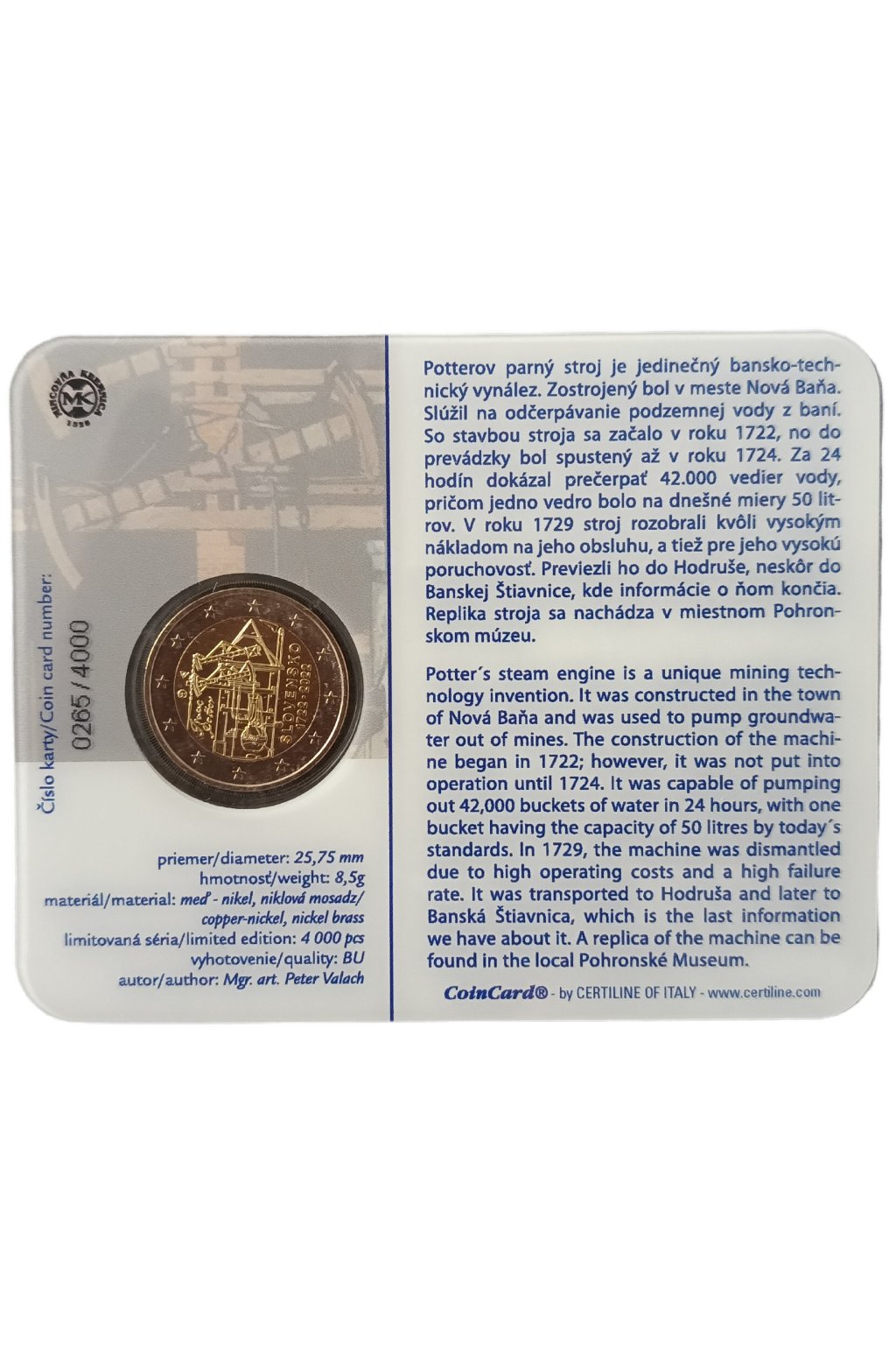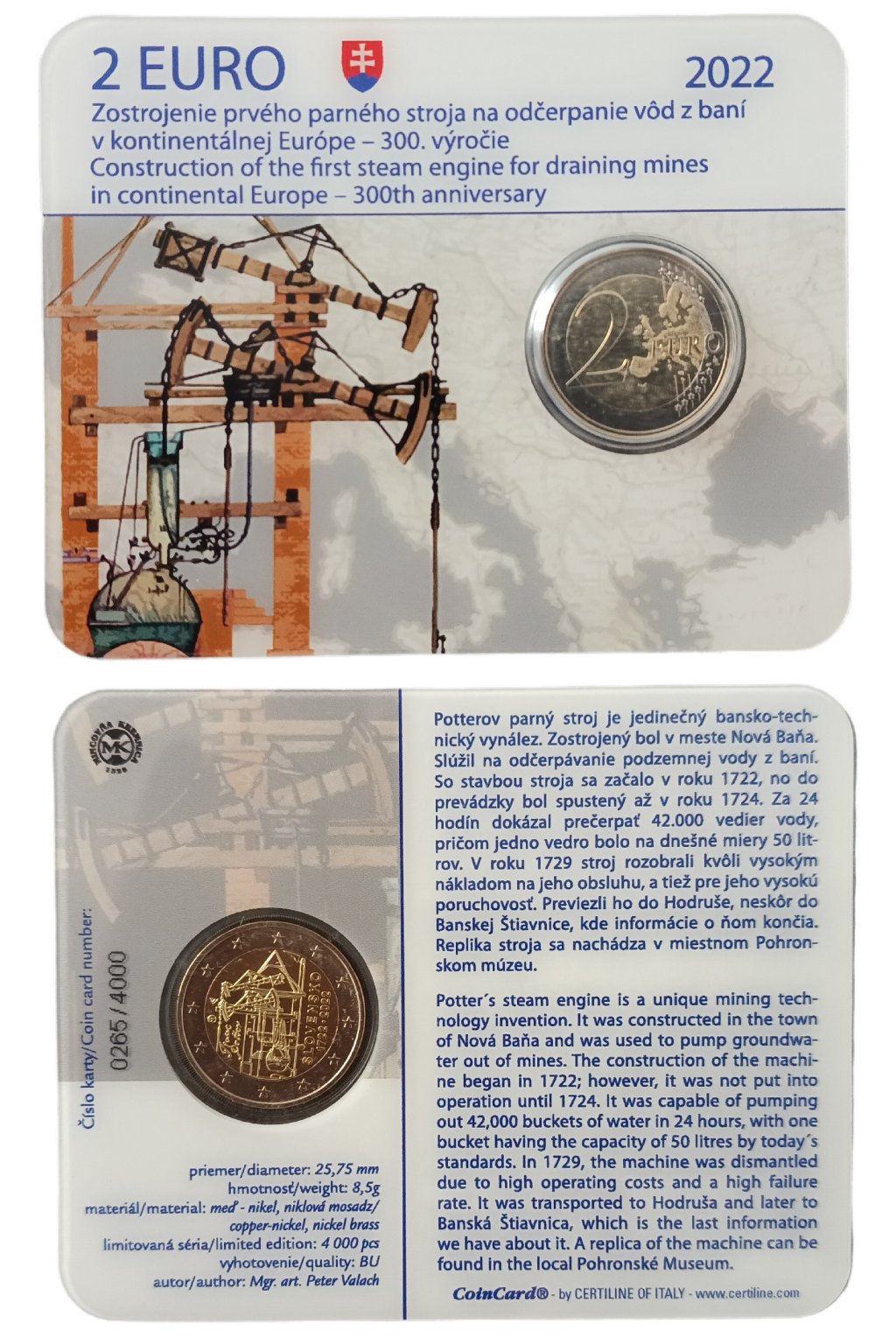 Slovenská 2€ pamätná minca 2022 – Parný stroj (zberateľská BU karta)