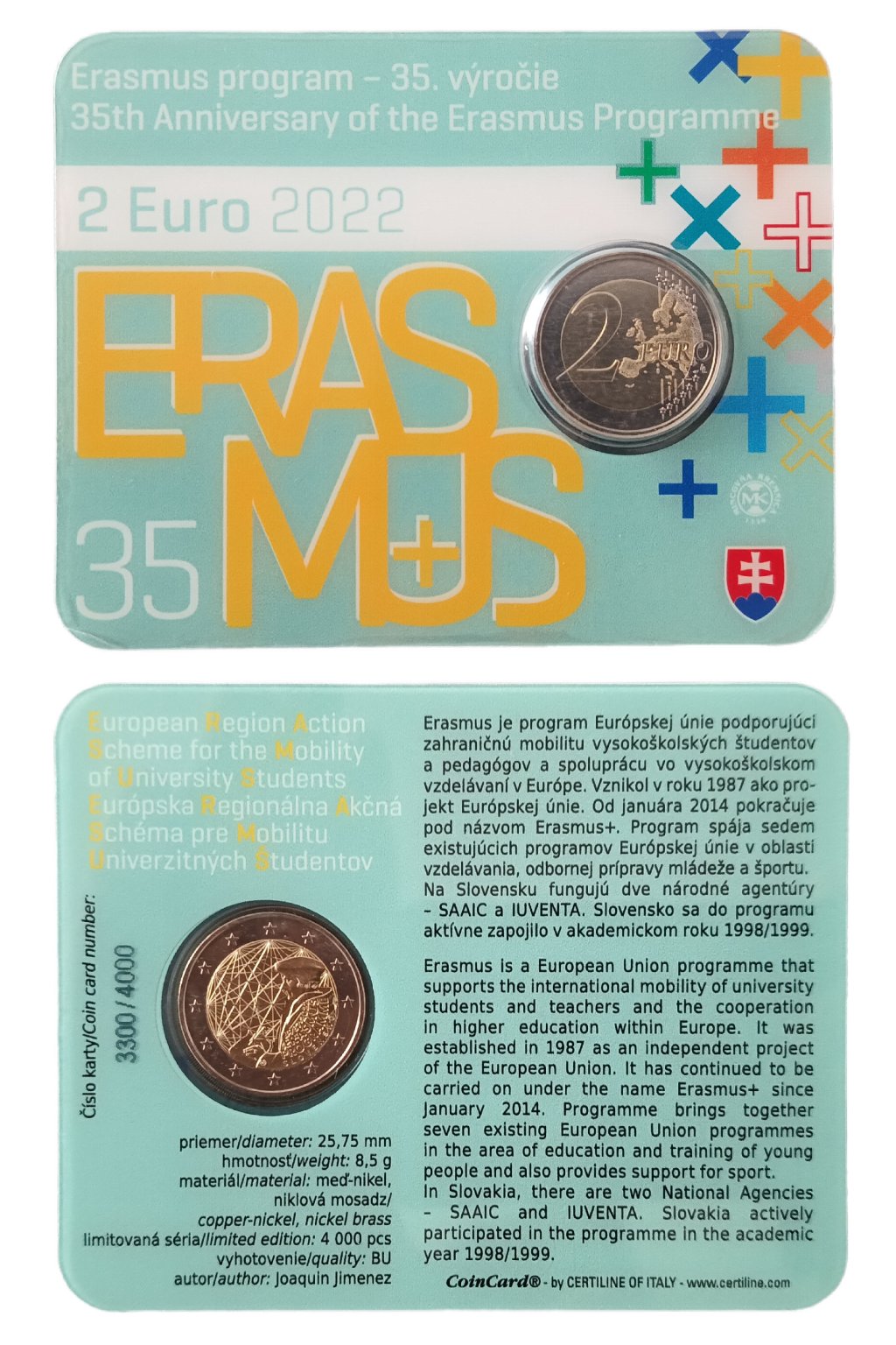 Slovenská 2€ pamätná minca 2022 – Erasmus (zberateľská BU karta)