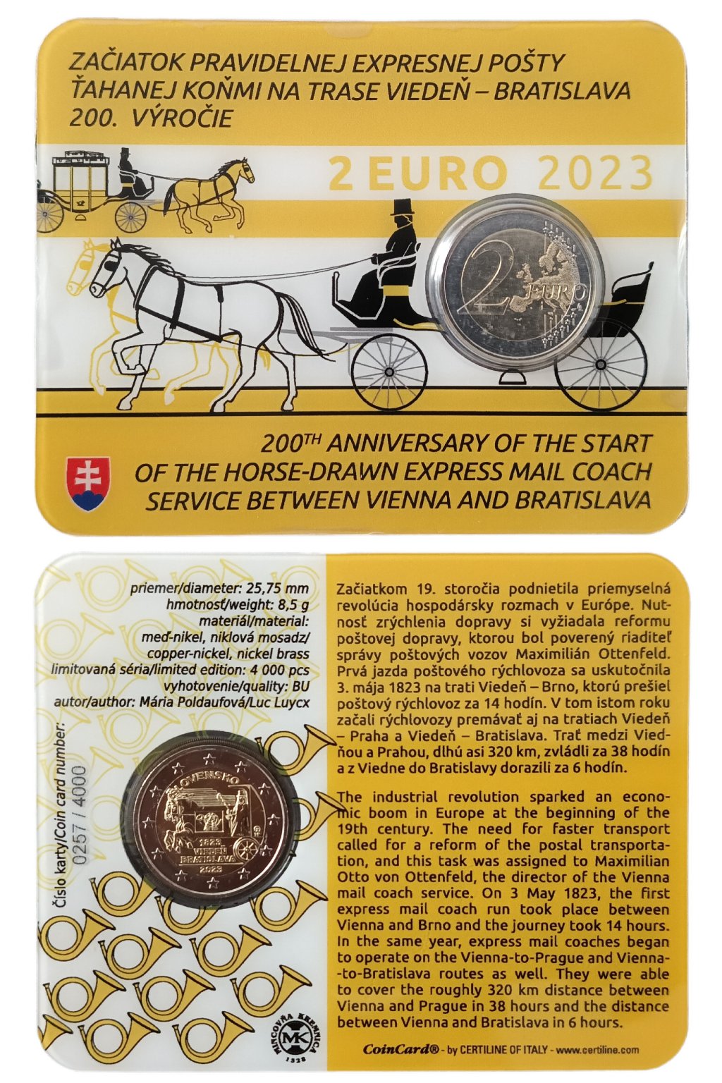Slovenská 2€ pamätná minca 2023 – Konská pošta (zberateľská BU karta)