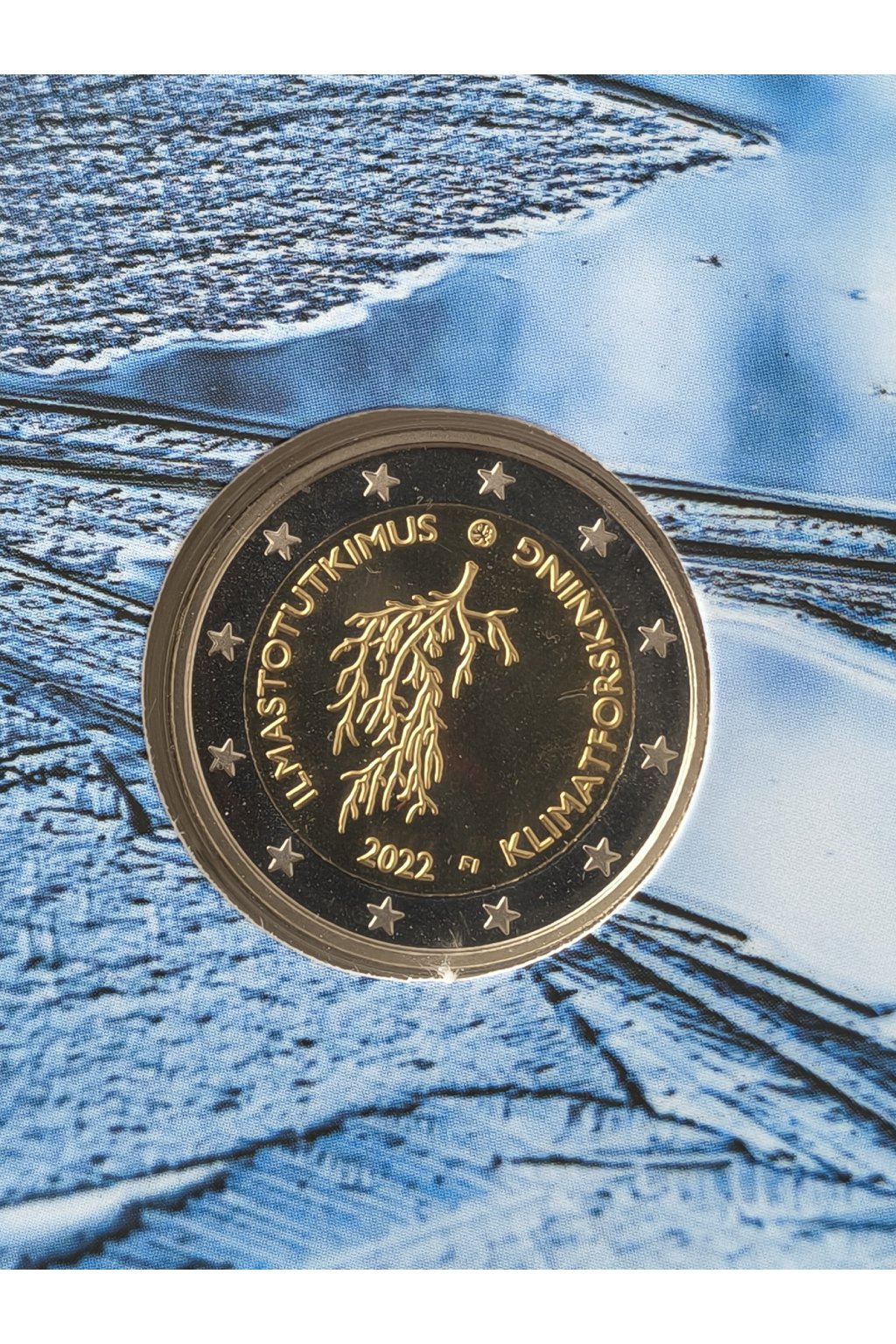 V roku 2022 vydalo Fínsko tematicky silnú pamätnú mincu, ktorá je poctou jednému z najaktuálnejších problémov súčasnosti – klimatickým zmenám. Výskum klímy sa stal kľúčovým nástrojom boja proti environmentálnym hrozbám a minca tak symbolizuje záväzok Fínska voči vedeckému poznaniu, udržateľnosti a ochrane našej planéty.