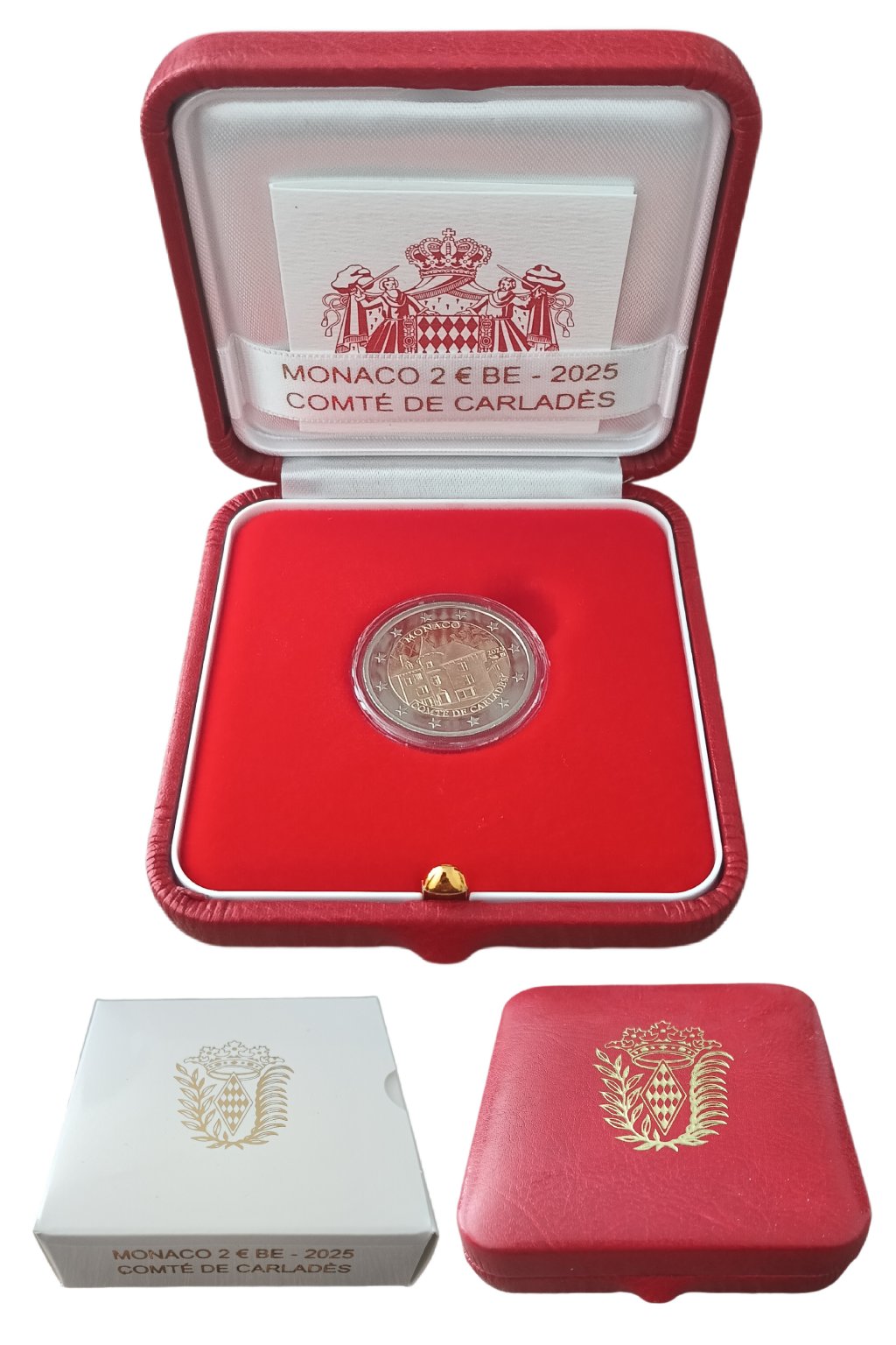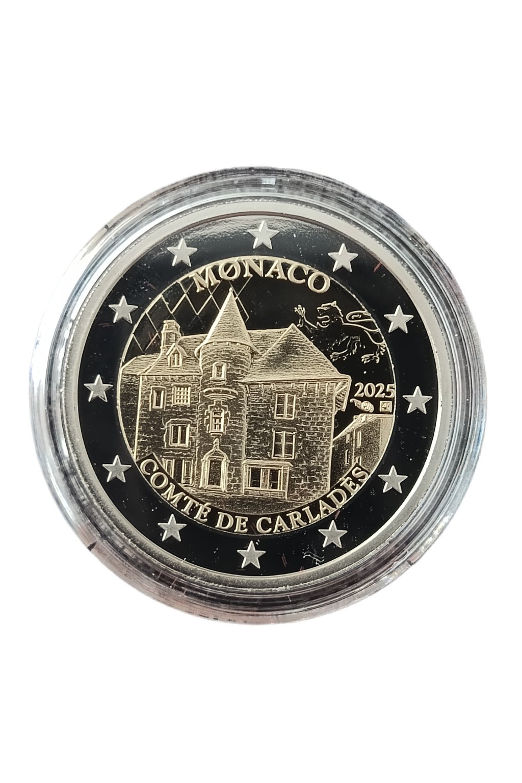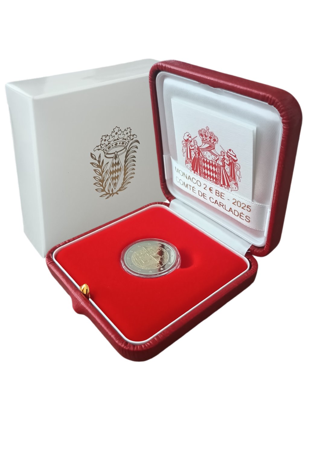 Monacká 2€ pamätná minca vydaná v roku 2025 vzdáva hold Grófstvu Carladez (Comté de Carladès) – historickému územiu s hlbokými koreňmi v európskej šľachtickej histórii. Tento titul je tradične spojený s monackou kniežacou rodinou a dnes ho nesie princ Jacques, syn kniežaťa Alberta II., ako oficiálny gróf z Carladezu. Minca tak symbolizuje nielen úctu k minulosti, ale aj pokračovanie dynastie Grimaldiovcov, ktorá je s Monakom neoddeliteľne spätá.
