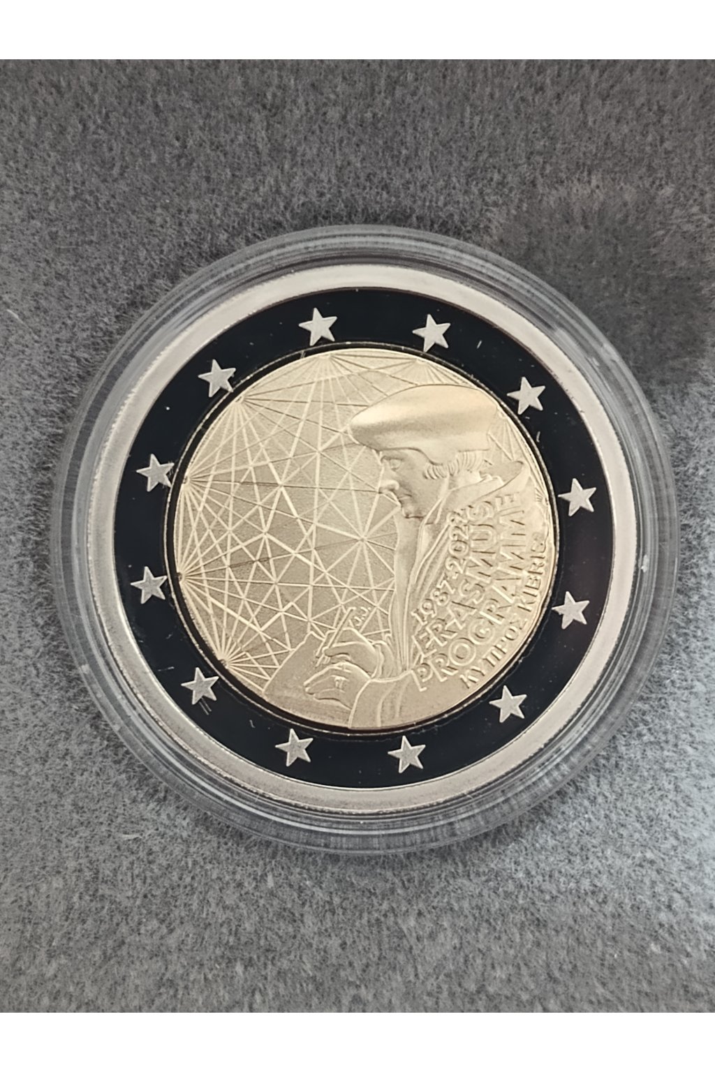 V roku 2022 si všetky krajiny eurozóny pripomenuli 35. výročie založenia programu Erasmus, ktorý za tri desaťročia umožnil miliónom mladých ľudí spoznávať iné krajiny, kultúry a hodnoty prostredníctvom štúdia a práce v zahraničí. Táto mimoriadna 2€ pamätná minca z Cypru vzdáva hold tomuto transformačnému európskemu programu, ktorý formuje generácie otvorených, vzdelaných a tolerantných ľudí. Na minci je zobrazený Erasmus Rotterdamský, renesančný učenec a humanista, ktorého meno sa stalo synonymom pre poznanie a vzájomné porozumenie medzi národmi.