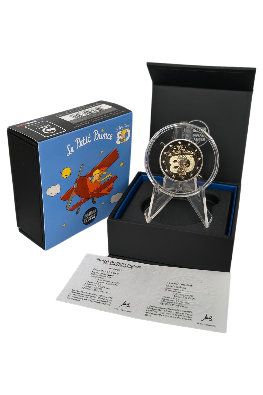 Francúzska pamätná 2 € minca vydaná k 80. výročiu svetoznámeho diela Malý princ (Le Petit Prince) vzdáva hold jednému z najprekladanejších a najmilovanejších literárnych príbehov sveta. Odkaz Antoina de Saint-Exupéryho o priateľstve, zodpovednosti a pohľade srdcom má nadčasovú hodnotu, ktorá oslovuje celé generácie čitateľov.