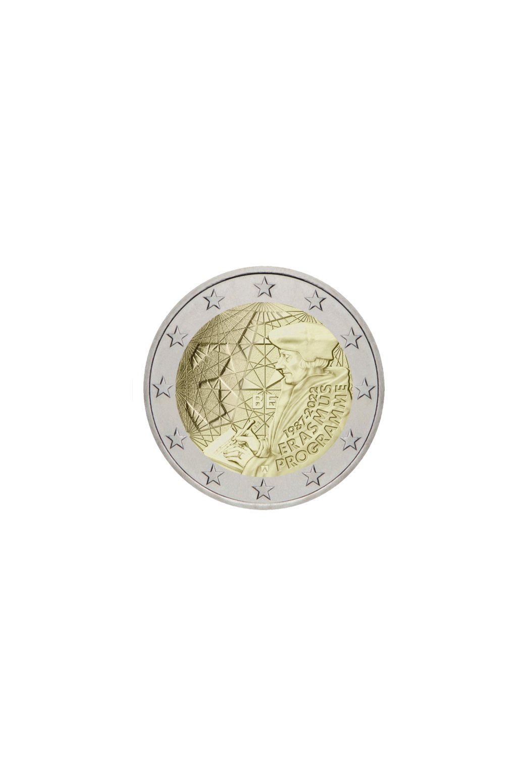 Pamätná 2€ minca Belgicka vydaná pri príležitosti 35. výročia vzniku Erasmus programu, jedného z najúspešnejších projektov Európskej únie. Tento program od roku 1987 pomohol miliónom študentov objavovať nové krajiny, kultúry a perspektívy. Motív s postavou Erasma Rotterdamského symbolizuje slobodu myslenia, učenia a spolupráce medzi národmi.